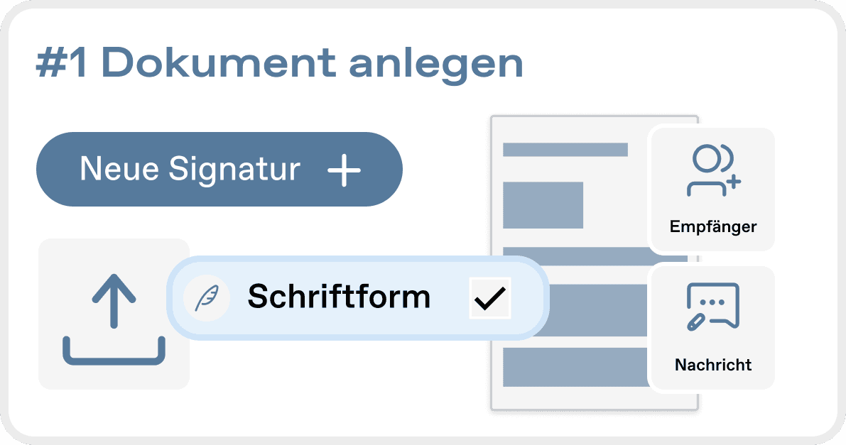 Wählen Sie bei Upload des Dokuments Schriftform aus. Fügen Sie die Kontaktdaten der Unterzeichner ein und starten Sie den Unterschriftsprozess.