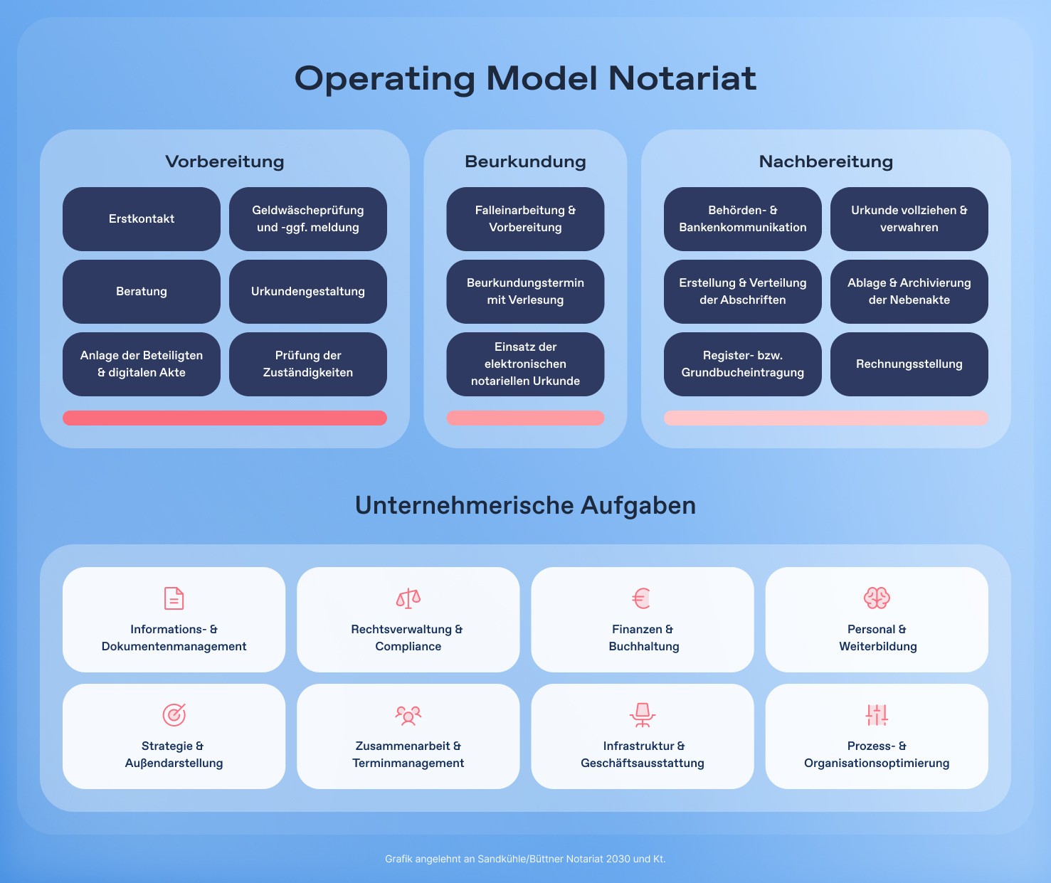 In diesem Dokument finden Sie die zentralen Wertschöpfungsprozesse des Notariats sowie konkrete Hilfestellungen zu Ihren unternehmerischen Aufgaben – von Finanzen und Buchhaltung bis Außenauftritt und Weiterentwicklung.