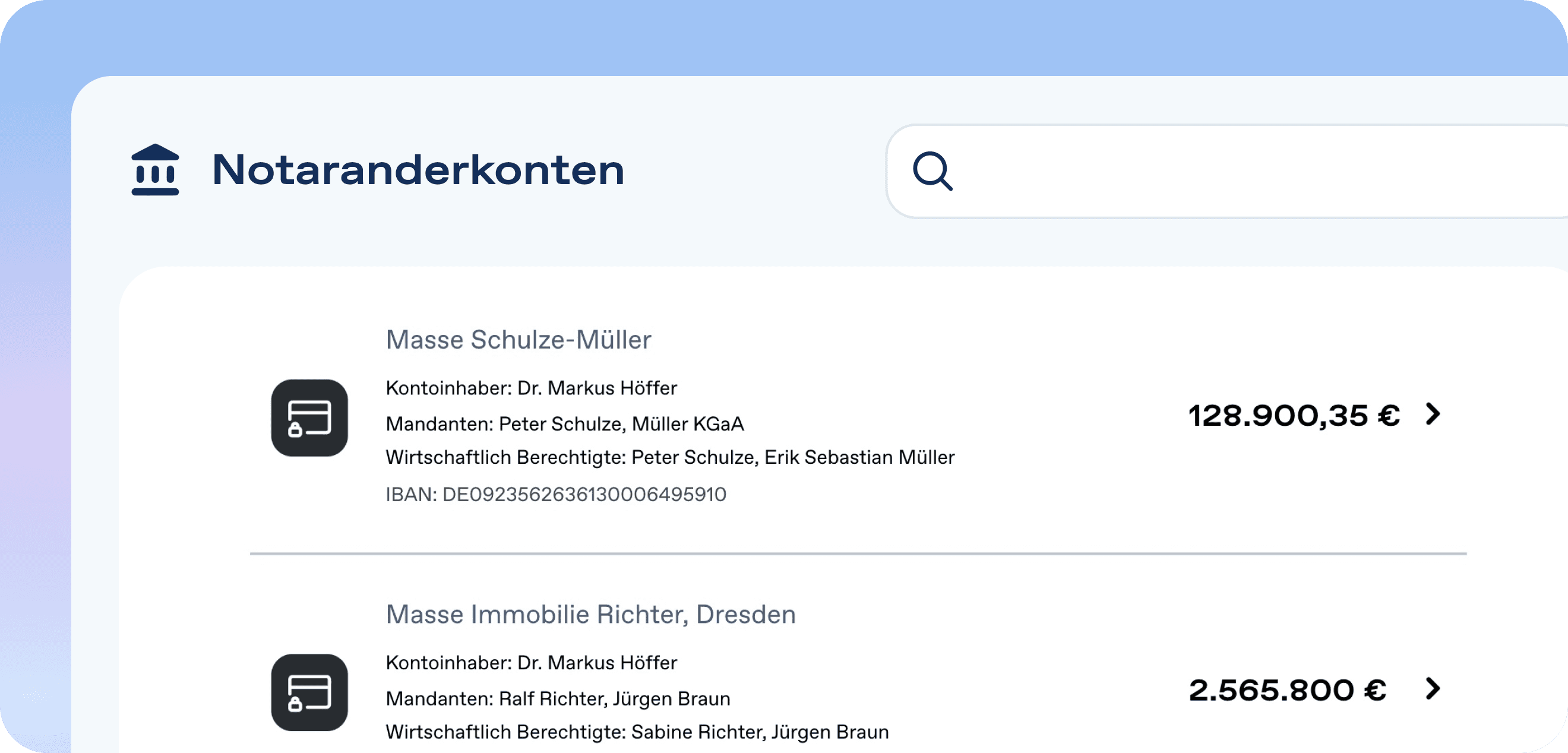 KanzleiBanking ist Deutschlands einziges Banking für Notarinnen und Notare – mit digitalen Anderkonten, nahtlosen Kanzleisoftware-Schnittstellen und persönlicher Beratung für Ihren erfolgreichen Start ins Notariat.