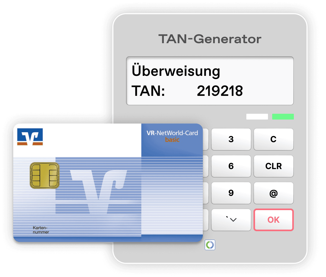 Mit unserer Chipkarte (VR Networld-Karte) und einem Kartenlesegerät (z.B. von Rainer SCT) können Sie die Notaranderkonten problemlos steuern.